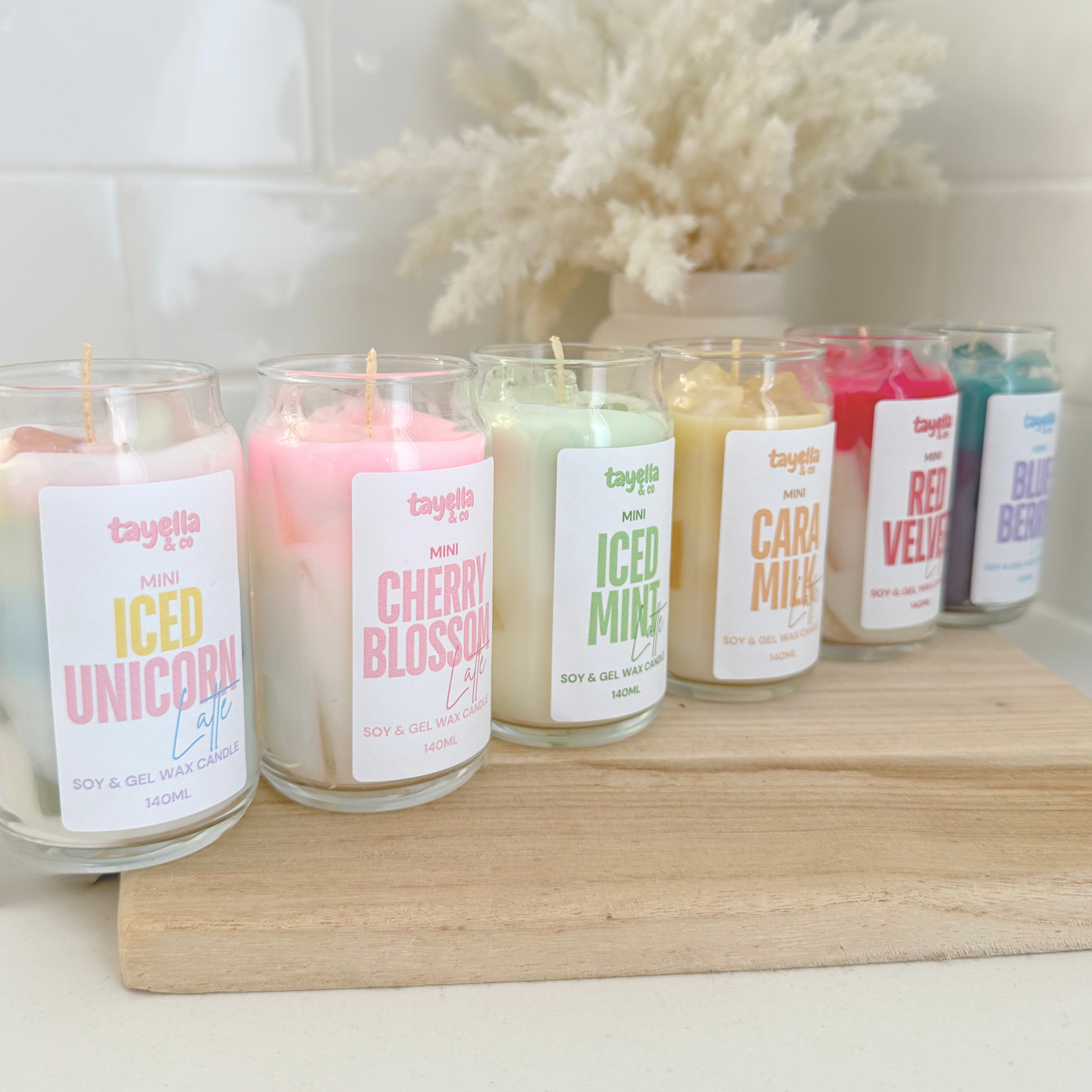 Meet your new favourite iced latte candle scents. This Limited Edition Birthday Iced Latte Mini Bundle includes six beautifully crafted mini candles, each designed to look like a perfectly layered iced latte, complete with creamy soy wax and realistic gel wax ice cubes.